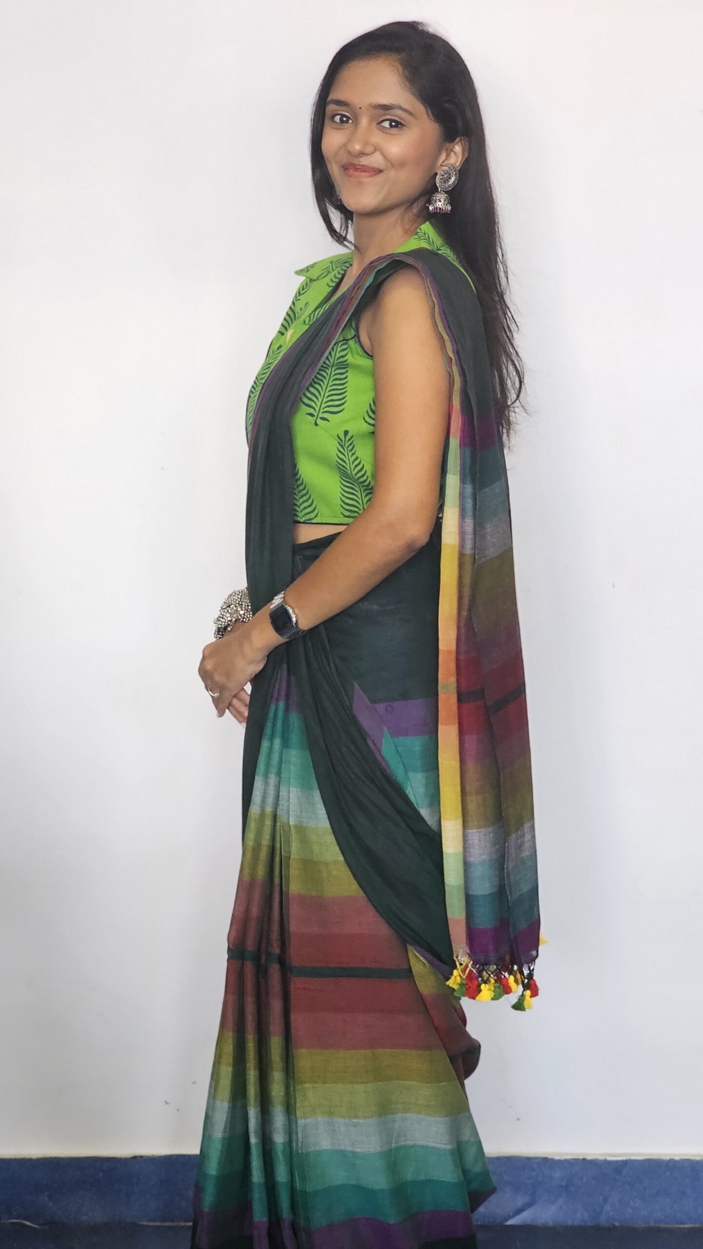 Each piece is a work of art! The multicolor handloom saree is woven with precision by skilled artisans, preserving the beauty of traditional craftsmanship. The intricate weaving patterns and vibrant hues make every saree unique, celebrating India’s rich textile heritage.